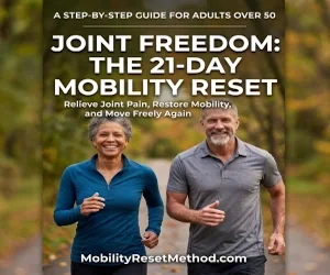 The Mobility Reset Method is a simple 21-day program built to help you restore natural joint lubrication in just 15 minutes a day, with no equipment and no pills. It fits into real life, so you can start where you are and keep going without a big time commitment.